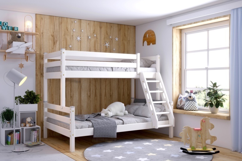 Двухъярусная кровать 80*190 "Соня" с наклонной лестницей Вариант 10 Белый Россия