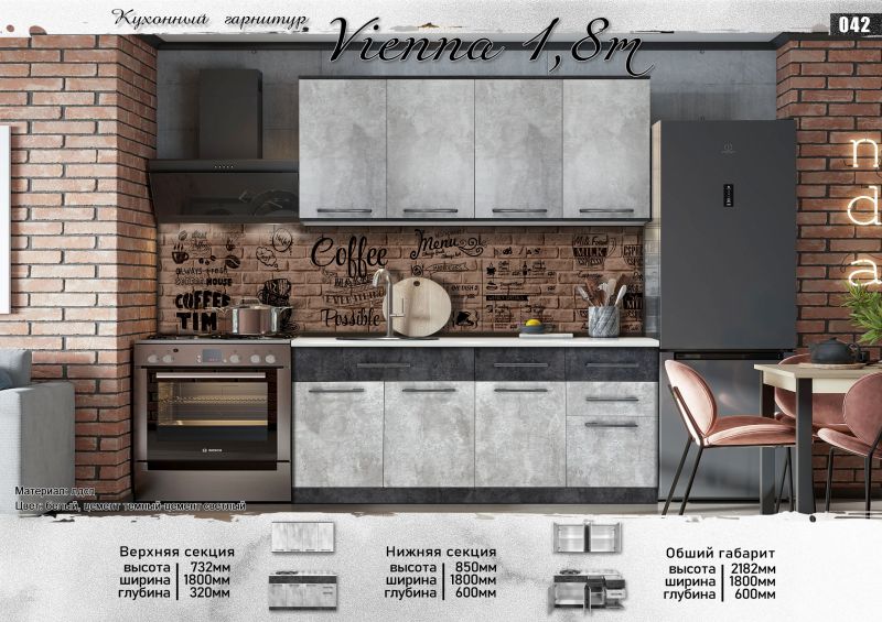 Кухонный гарнитур "Виенна" 1,8 м Белый/Серый, Elegant