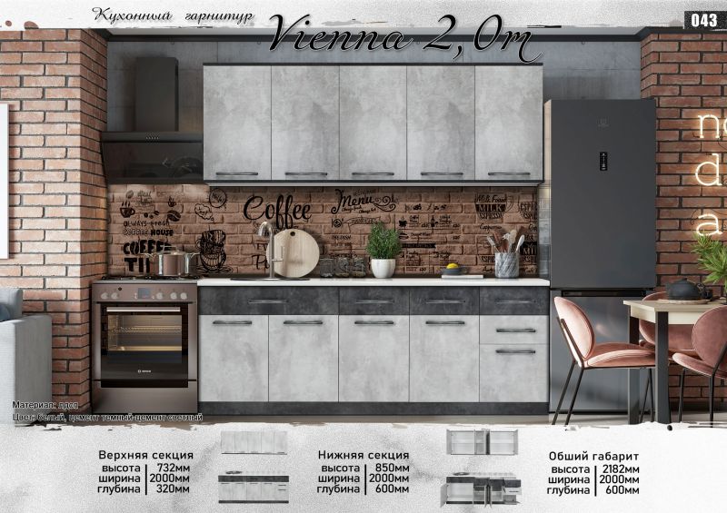Кухонный гарнитур "Виенна" 2 м Белый/Серый, Elegant
