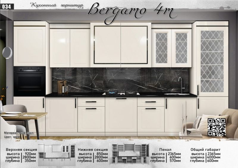 Кухонный гарнитур "Бергамо" (Bergamo) 3,4 м, Крем Elegant