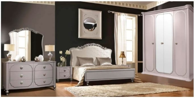 Спальный гарнитур "Вена" 5Д Белое/Серебро Слониммебель