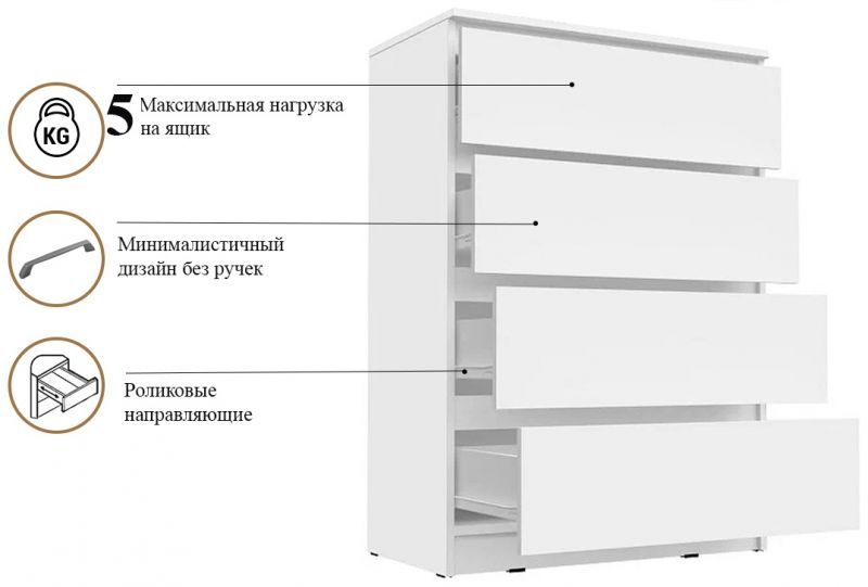 Комод KOM4S "Непо", Белый, Гербор