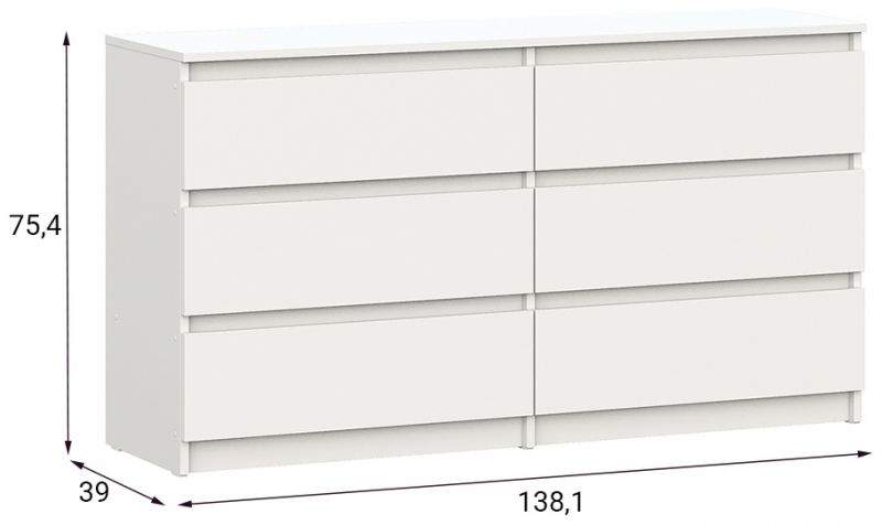 Денвер, Комод с ящиками (1,38м) Серия 2, Белый Шагрень, СВ Мебель