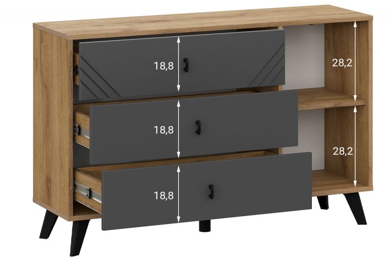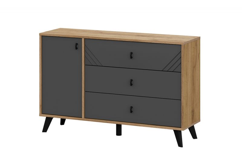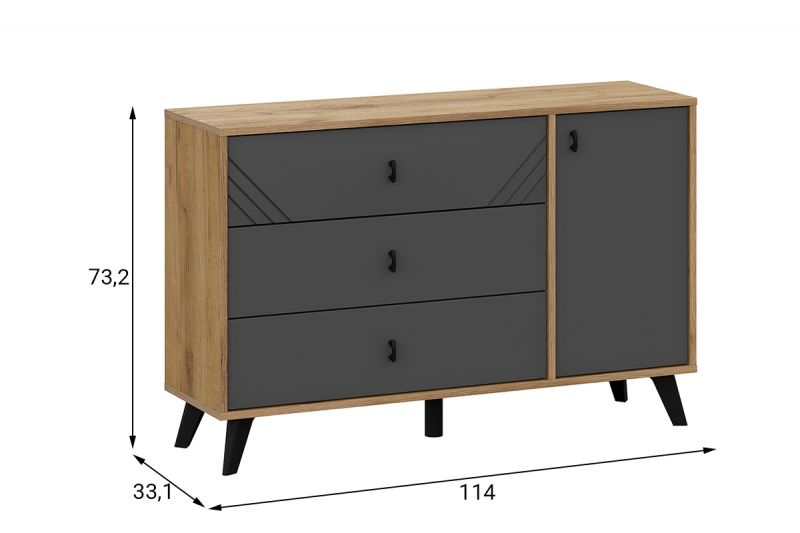 Байкал, Комод 3 ящика (со створкой), Дуб Золотой/Графит SV, СВ мебель