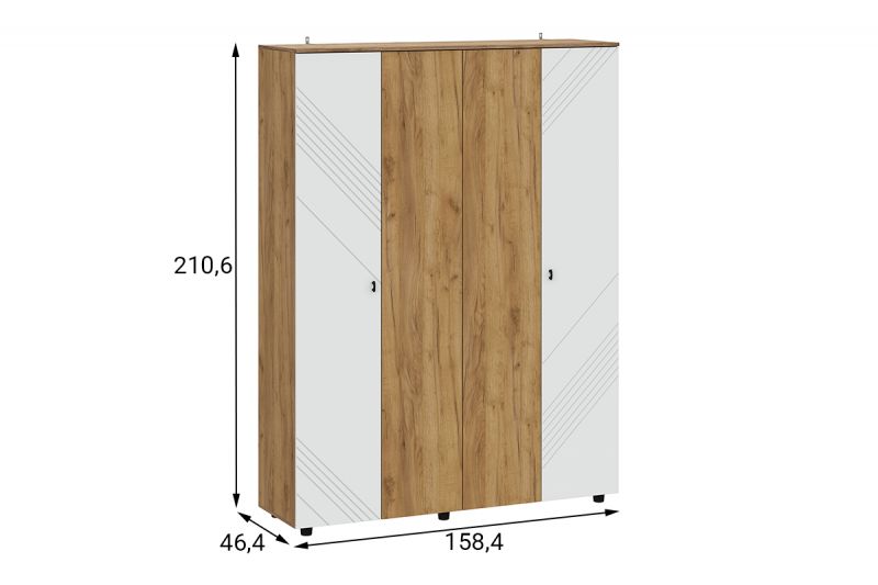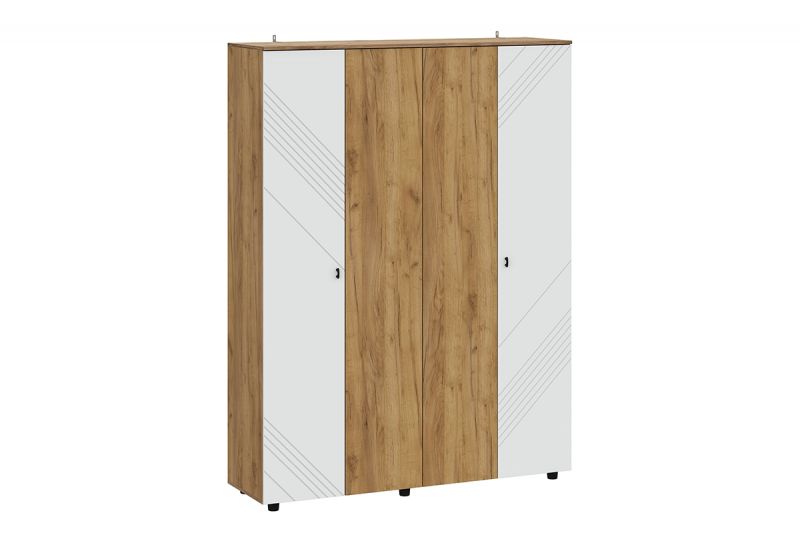Байкал, Шкаф четырехстворчатый, Дуб Золотой/Белый матовый, СВ мебель