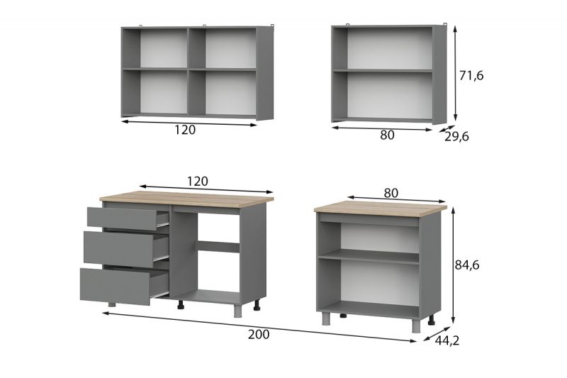 Денвер, Графит серый/Дуб Сонома 2,0., Кухонный комплект, СВ Мебель