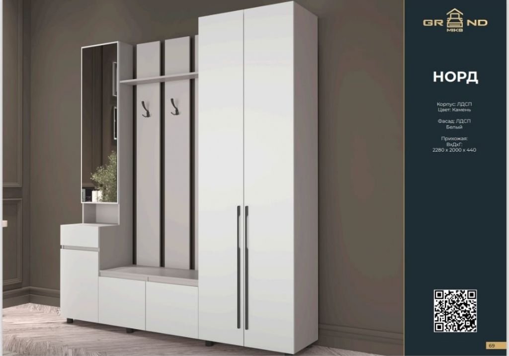 Норд 2м Прихожая, Камень/Белый, Грандмикс