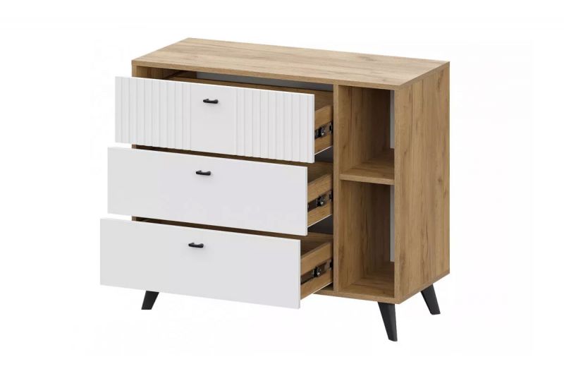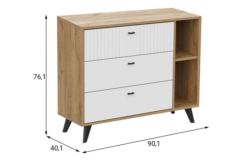 Комод "Милан" 3Я, Дуб Золотой/Белый матовый, СВ Мебель