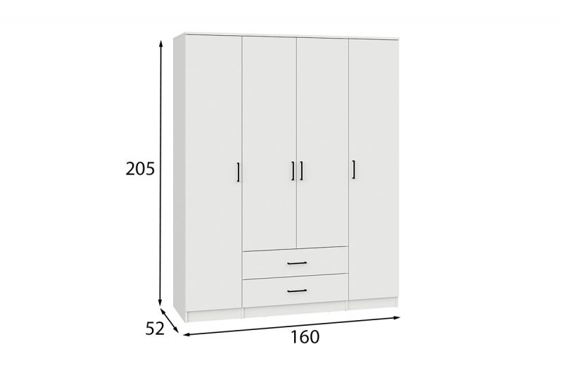 Шкаф "ШК 1" 4Д серия-2, Белый Шагрень, СВ Мебель