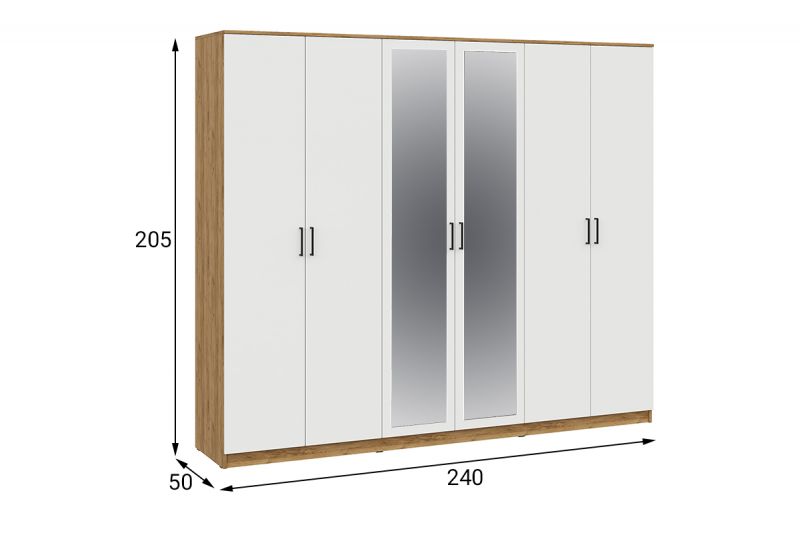 Шкаф "ШК 13" 6Д, Дуб Золотой/Белый Шагрень, СВ Мебель