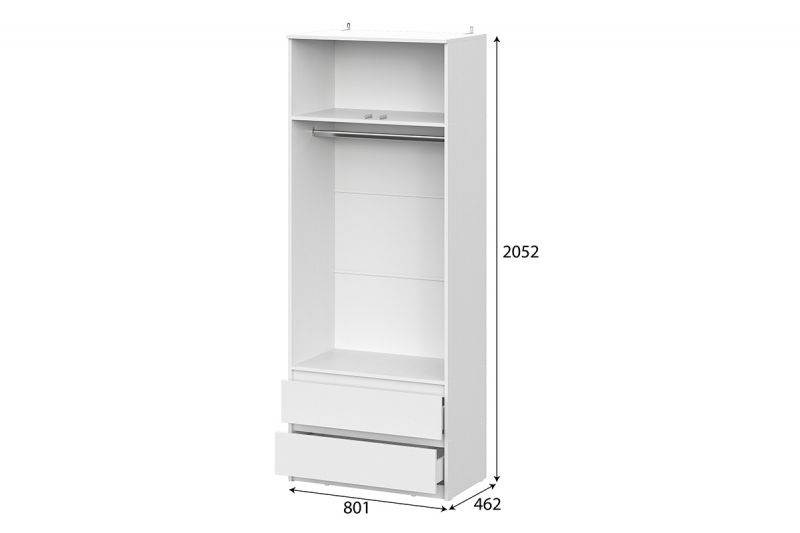 Денвер, Шкаф 2Д2Я, Серия 2, Белый Шагрень, СВ Мебель