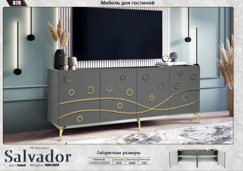 ТВ-тумба Сальвадор, серый, 2 м.Elegant