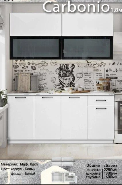 Кухонный гарнитур "Карбонио" 1,8 м белый Elegant