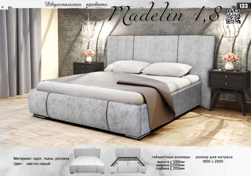 Кровать 1800 "Маделин" ,светло серый, Elegant