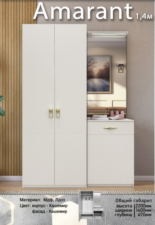Прихожая "Амарант" 1,4 м Кашемир, Elegant